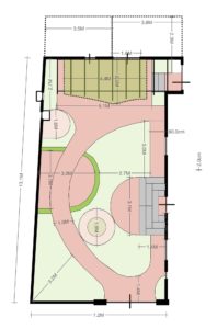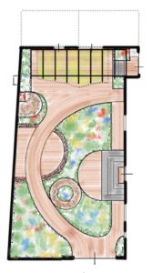Een TUIN-ontwerp is een uitgewerkt plan in 2D op schaal van een creatief ontwerp met toevoegingen van een maten en hoogte/oppervlakteplan.